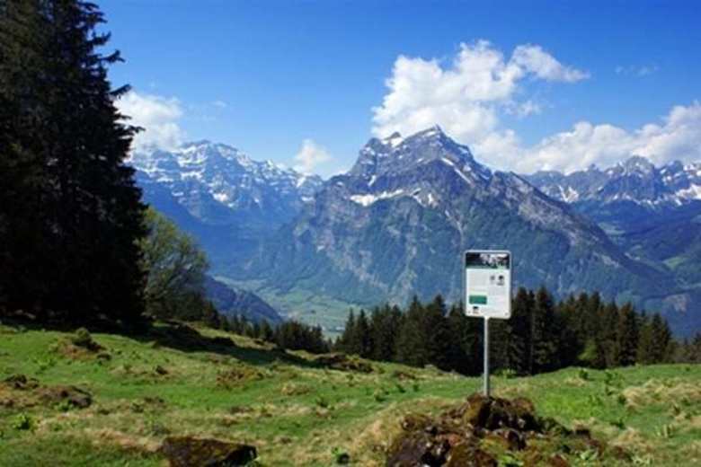 Erlebnisreiche Wanderung in den Glarner Alpen in Glarus: Diese kulinarische Höhenwandertour mit einmaliger Aussicht weit über die Linth-Ebene kann als kleine Wanderung während eines Nachmittages oder als mehrstündige Tageswanderung in Angriff genommen werden. Der Weg, dessen höchster Punkt auf 1.442 m liegt, wurde komplett neu konzipiert und zu einem spannenden Themen- und Erlebnisweg ausgebaut. Auf zehn Tafeln wird informativ und einfach verständlich über die Geschichte, die Produktion und die Vermarktung des Schabzigers informiert. Mahlzeit!