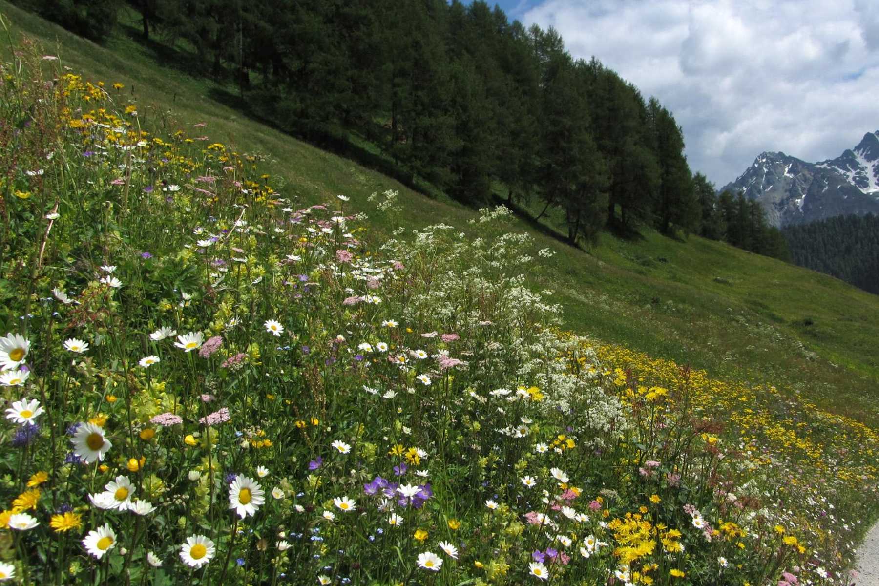 Artenreiche Almwiesen Foto: Andrea Badrutt, Chur, Tourismus Engadin Scuol Samnaun Val Müstair AG