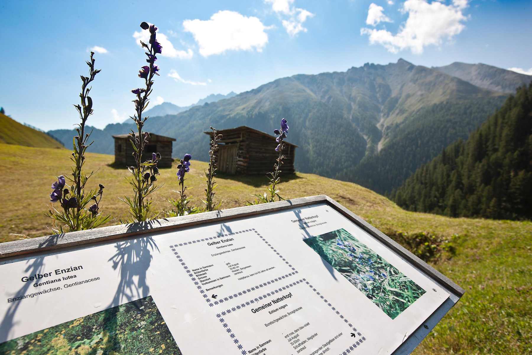28 informative Schautafeln geben Einblick in die Flora des Samnauntales. Foto: Andrea Badrutt, Chur, Tourismus Engadin Scuol Samnaun Val Müstair AG