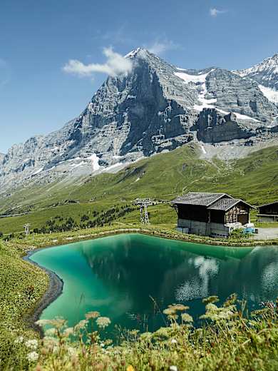Auf rund 6 km führt der Weg in etwa 2 Stunden von der Station Eigergletscher zur Alpiglen – stets am Fuße der imposanten Eigernordwand entlang, im UNESCO Weltnaturerbe Jungfrau-Aletsch. Das Panorama mit Eiger, Mönch und Jungfrau ist atemberaubend, und mit etwas Glück lassen sich Kletterer in der Nordwand beobachten.