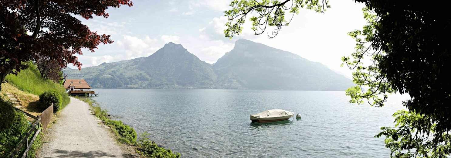 Steter Begleiter sind die weissen Wegweiser mit grünem Piktogramm, die dafür sorgen, dass man sich nicht verlaufen kann. Gestartet wird bei der Schiffstation Spiez und entlang des Strandweges lockt der Thunersee mit seiner tiefblauen Farbe.