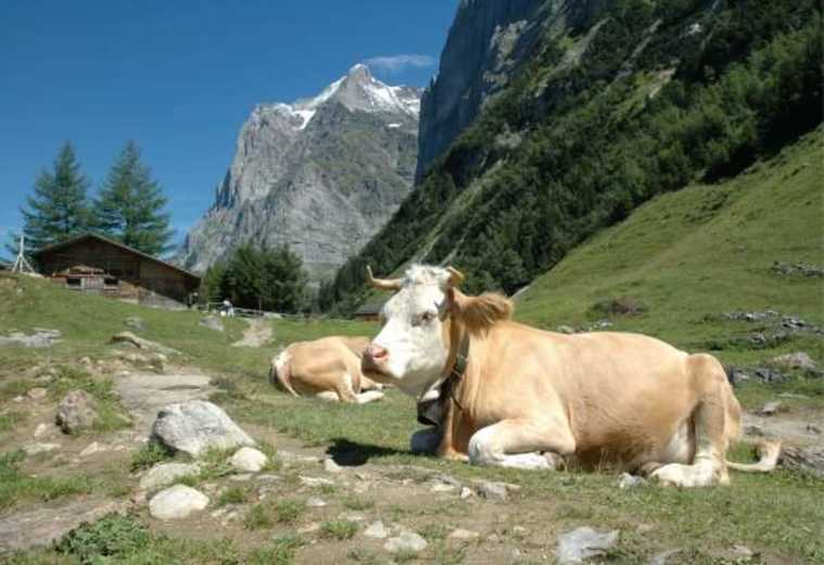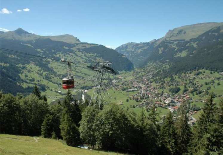 Mit der Luftseilbahn geht es bequem von Grindelwald hinauf. Auf der Alp starten verschiedene Wanderungen wie zur Bäregg oder zum Felssturz des Eigers. Oder aber man wandert gleich talwärts, wie bei dieser Tour in den Berner Alpen im Kanton Bern.