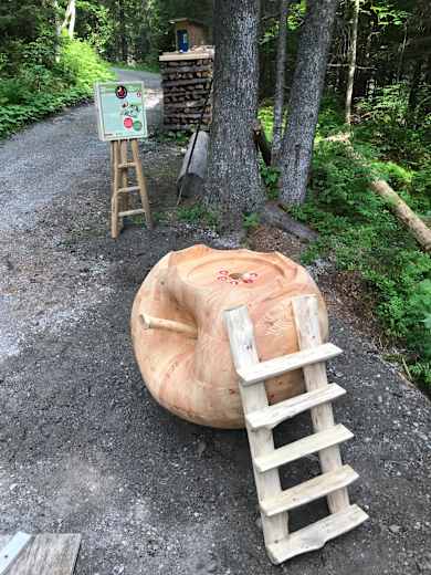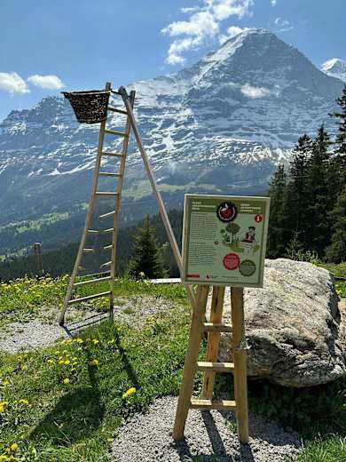 Wissenswertes rund um den Apfel: Auf dem Öpfelchüechliweg in der Jungfrau-Region im Berner Oberland erhält man allerlei Informationen zum Thema Apfel. Dabei wandert man ausgehend von Holenstein (1.619 m) in einer zauberhaften Landschaft mit einer großartigen Kulisse an fünf Schautafeln vorbei.