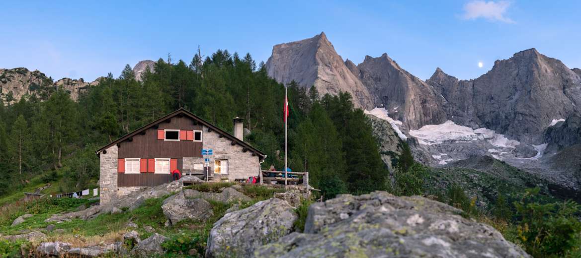 Die Capanna Sasc Furä (1.904 m) ist nicht nur Basislager für die herausfordernde Besteigung des Piz Badile (3.308 m), sondern auch Stützpunkt auf dem Sentiero Alpino Bregaglia. Diese Hüttenwanderung führt in vier bis fünf Tagen vom Malojapass zum Lago di Mezzola.