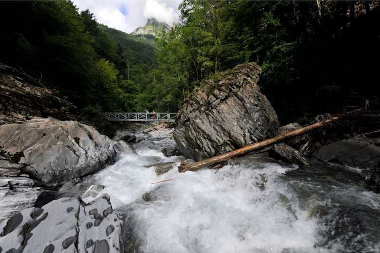 Es folgen einige spannende Kilometer durch die Schlucht in Richtung Norden und man passiert über tosendem Wasser zahlreiche Metall- und Hängebrücken, bis man schließlich nach der Überquerung einer letzten alten Steinbrücke das Ende der Schlucht erreicht.