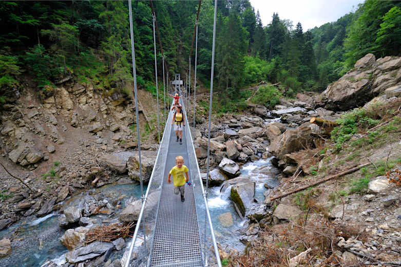 Der Aaschlucht-Erlebnisweg in den Urner Alpen ist eine einfache und abstiegsorientierte Wanderung für die ganze Familie. Vorbei an imposanten Felsformationen und über eindrucksvolle Brücken in verschiedenen Baustilen wandert man entlang der stellenweise wilden Aa und passiert dabei die Kantonsgrenze von Obwalden und Nidwalden.