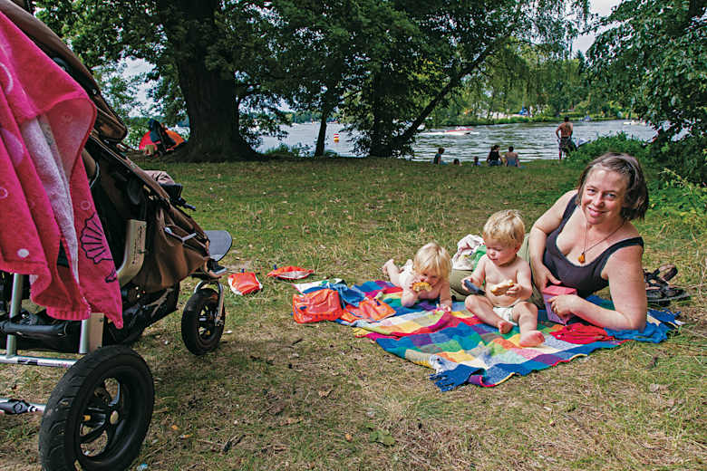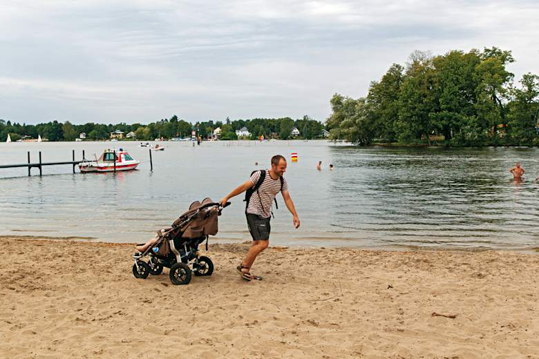 Der Schmöckwitzer Werder zwischen Zeuthener See und dem Krossinsee an der Grenze zu Brandenburg ist aber auch ein tolles Wanderrevier und eine Tour mit dem Kinderwagen wert. Von der Endhaltestelle der Straßenbahn in Alt-Schmöckwitz führt eine Brücke über die Dahme auf die lang gestreckte Landzunge. Auf dieser führt der Weg erst durch den Wald, dann immer am Ufer entlang mit unvergesslichen Ausblicken auf das Wasser.