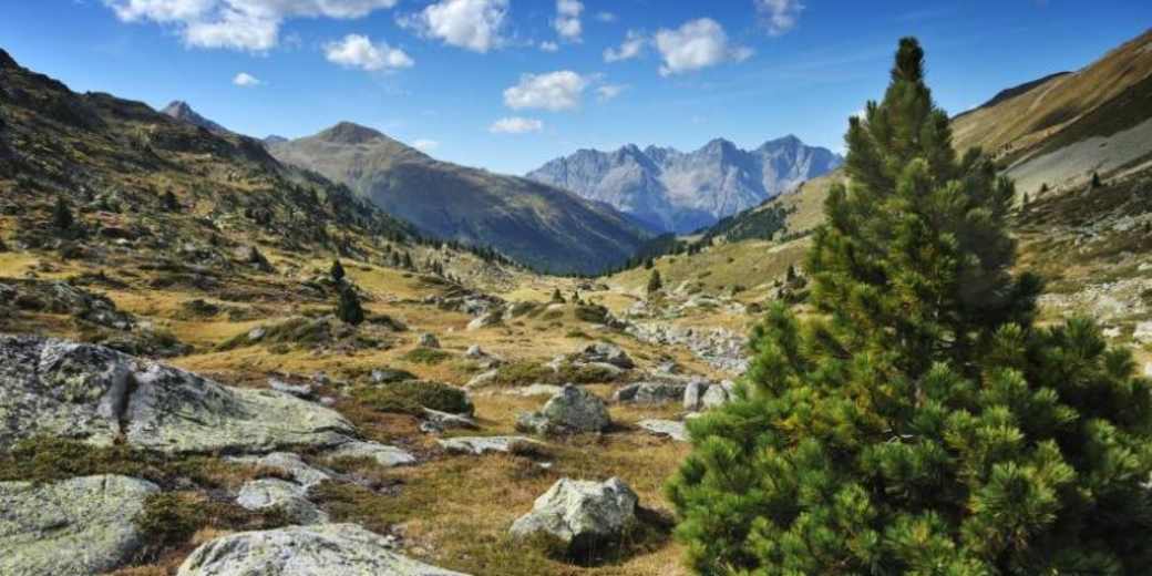 Herrliche Pilgeretappe in der Bergwelt der Sesvenna Gruppe im Kanton Graubünden in der Schweiz: Ausgehend vom Bergdörfchen Lü führt einen diese Wanderung über den Costainerpass, durch die märchenhaften und höchstgelegenen Arvenwälder Europas, vorbei an der Alp Astras, bis in das idyllische Dorf S-charl.