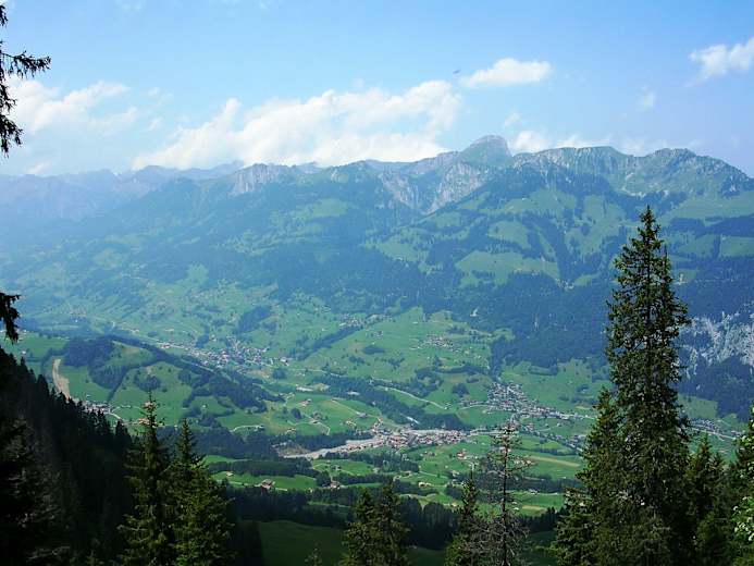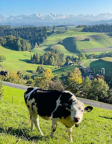 Diese Wanderung im Kanton Bern startet mit der schönsten Aussicht über den Thunersee und die Berner Alpen auf der Spitze des dreieckigen Niesen (2.362 m). Auf dem Panoramaweg ins landschaftlich interessante Diemtigtal bieten sich einige Fotospots; beliebte Sujets sind auch die unzähligen Kühe und Schafe auf den grünen Weiden.