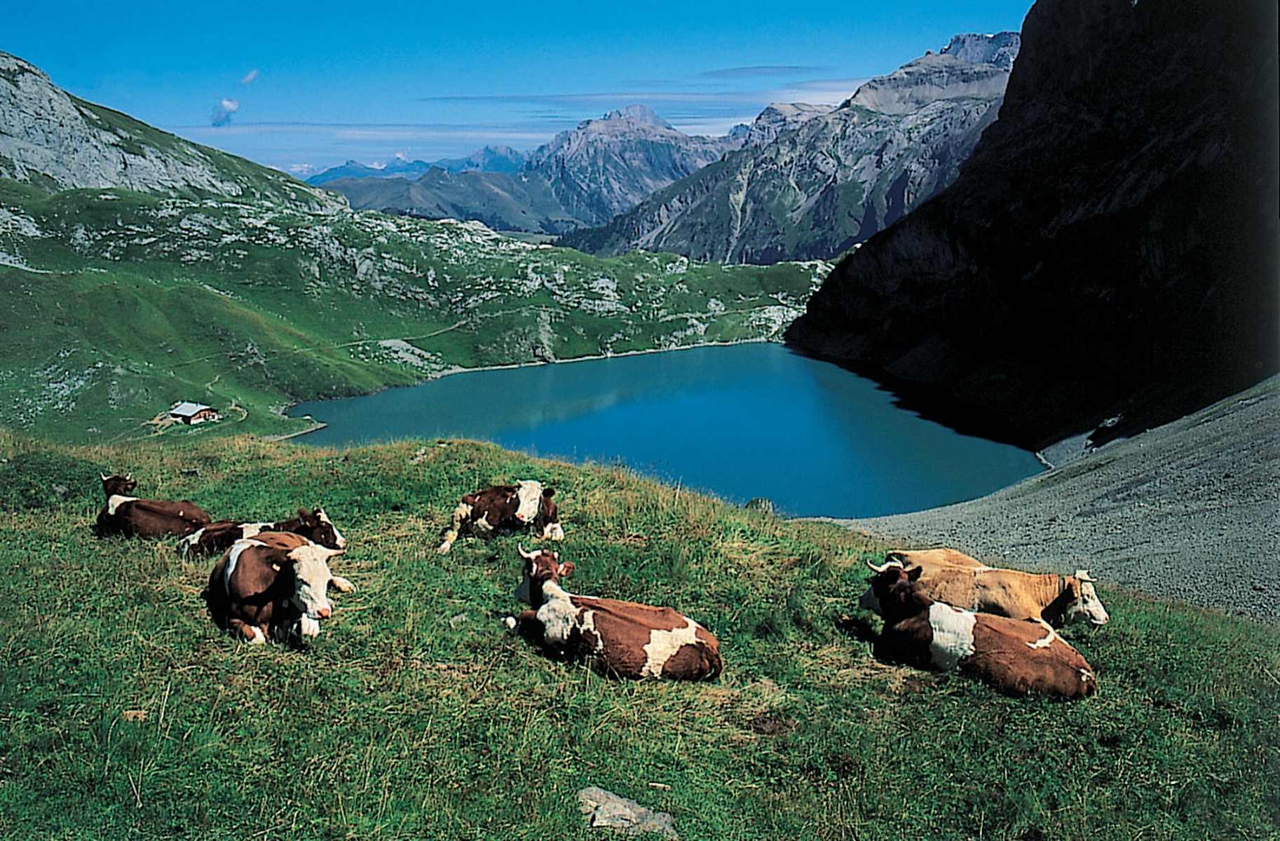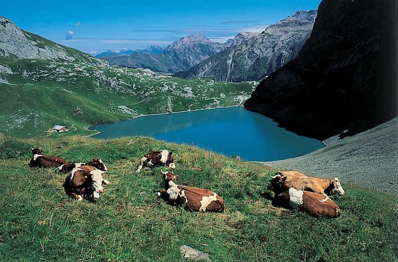 Am Stigelschafberg angekommen kann man den 300 m tiefer liegenden Iffigsee erblicken. Über Murmeltier-, Schaf- und Rinderweiden steigt man schließlich zu diesem ab. Über den Rücken der Egge, wo sich ein lohnender Aussichtspunkt befindet und über Groppi gelangt man schlussendlich auf einem Alpfahrweg zur gemütlichen Iffigenalp, wo die Wanderung endet.