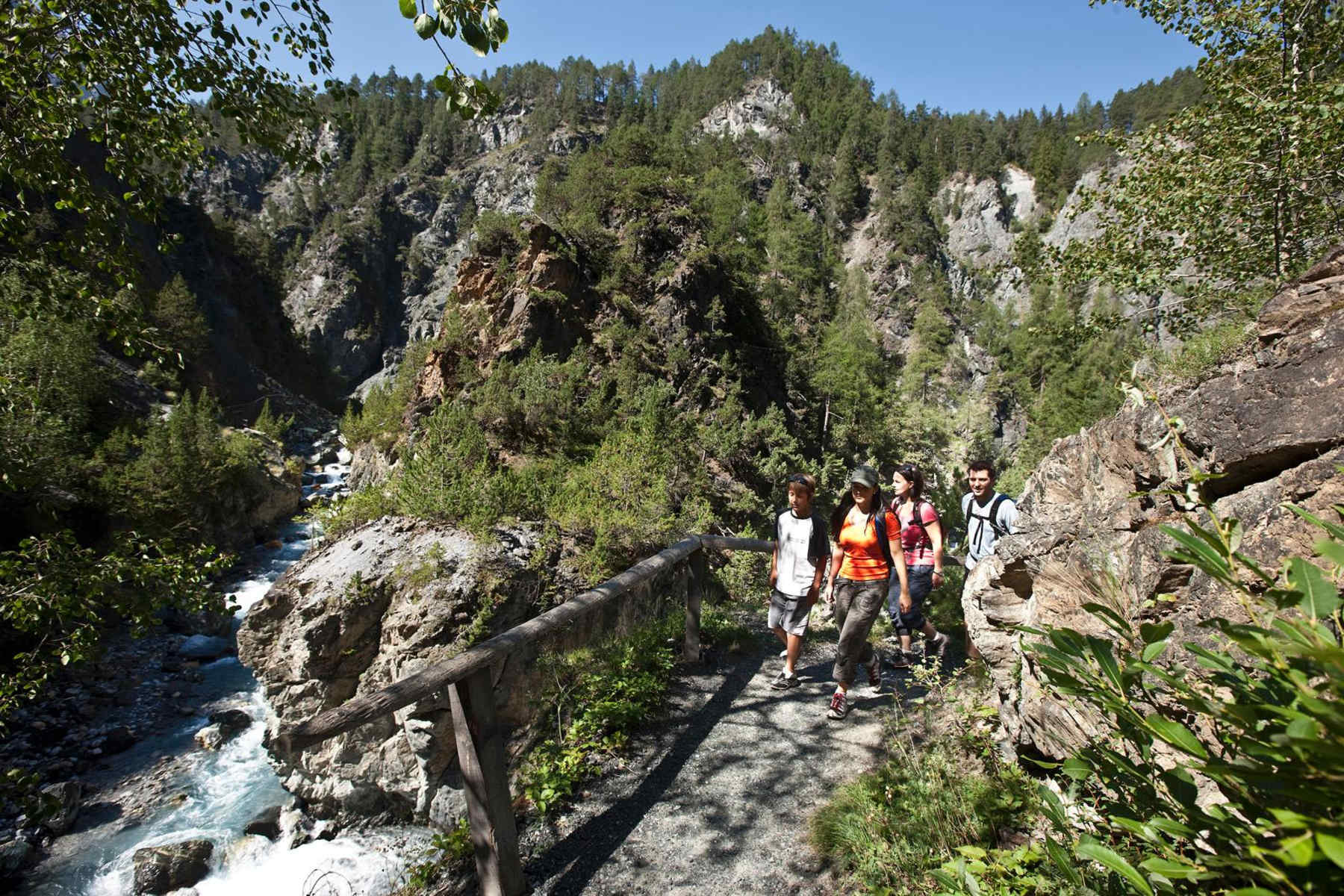 Man startet ab Scuol, posta und wandert erst über die Gurlainabrücke und etwas später am Elektrizitätswerk vorbei über die Brücke und in die Clemgia-Schlucht. Weiter folgt man dem Weg bis zur Abzweigung Avrona.