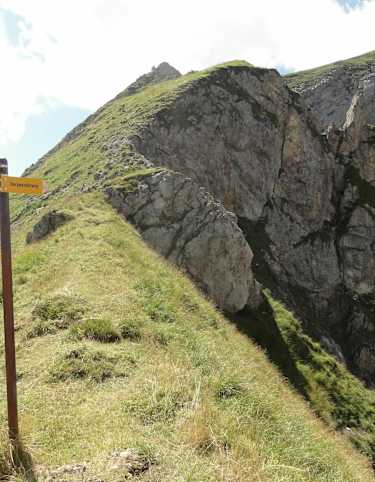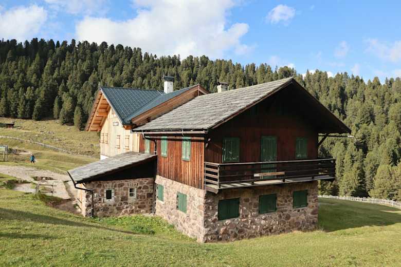 Nachdem man mit der Standseilbahn Raschötz von St. Ulrich in Gröden zur Bergstation (2.100 m) hinaufgefahren ist, wandert man auf dem Weg Nr. 35 zunächst bis zur kleinen bewirtschafteten Saltner Schwaige auf 2.113 m, bei welcher man sogleich die erste Stärkung einnehmen kann. Weiter geht der Wanderweg Nr. 35 abfallend durch den Wald und bis zur Abzweigung Flitzer Scharte mehr oder weniger eben. Hier, an dieser Kreuzung folgt man weiterhin dem Hang entlang den Weg, bis auf eine Höhe von 2.165 m.