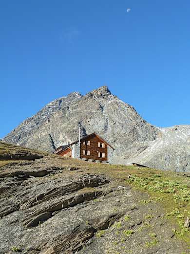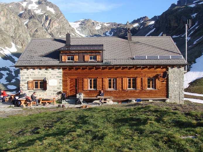 Der Ausgangspunkt der 3. Etappe - die Jenatsch Hütte Foto: TVB Engadin Scuol Samnaun Val Müstair