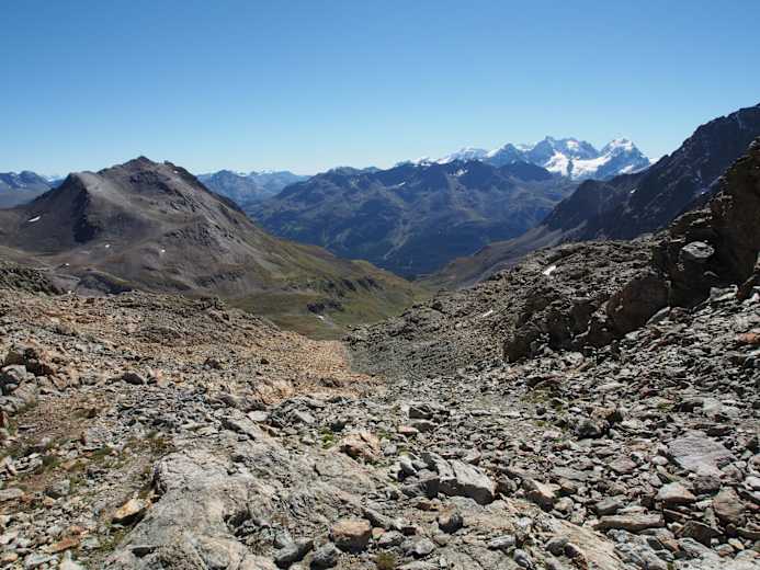 Blick von Fuorcla Suvretta - Piz Nair Berninagruppe Foto: TVB Engadin Scuol Samnaun Val Müstair