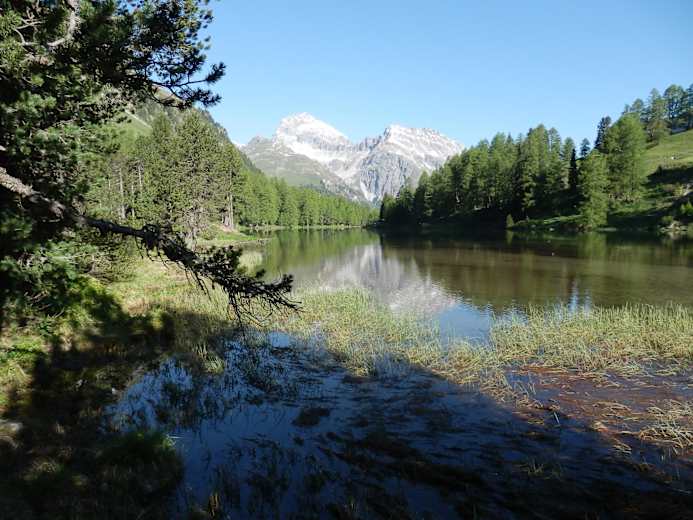 Den Markierungen folgend, kommt man entlang einzigartiger, grün schimmernder Bergseen, den Crap Alv Laiets, die zu einer Abkühlung einladen. Nach einer Erfrischung führt der Weg weiter zum 2.466 m hohen Übergang Fuorcla Crap Alv (Gehzeit rund 1,5 h). Diese Fuorcla ist dafür bekannt, dass sie die größte Vielfalt an verschiedensten Pflanzenarten der Schweiz hat.