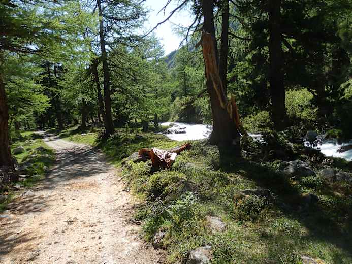 Ein steiler Abstieg bringt einen in den lichten Wald bei Palüd Marscha im oberen Val Bever (Gehzeit 1 h). Man folgt dem Fahrweg zur Alp Suvretta. Dort passiert man die Brücke über den Beverin und steigt, vorbei an Tegia d'Val, zur Chamanna Jenatsch auf 2.652 m (Gehzeit 3 h) auf.