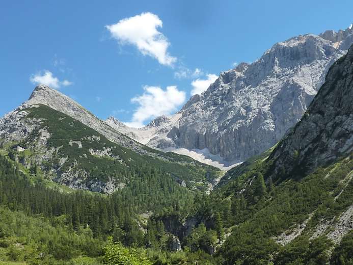 Abstieg von der Birkkarspitze Foto: Gerald Aichner Die Laliderer Foto: Gerald Aichner Die Lafatscher Alm Foto: Gerald Aichner Die Kohleralm Foto: Gerald Aichner Der Isarursprung im Hinterautal Foto: Gerald Aichner Die junge Isar im Hinterautal Foto: Gerald Aichner Das Hallerangerhaus Foto: Gerald Aichner