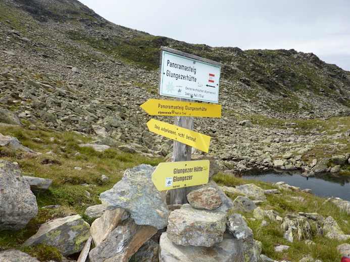 Über den „Kurt-Recheis-Weg“ Nr. 333 erreicht man das Tulfeinjöchl auf 2.278 m, wo die Materialseilbahn zur Glungezer-Hütte startet. (Gepäcktransport).Hier folgt man nun dem Glungezer-Panoramasteig zur Glungezer-Hütte auf 2.610 m.