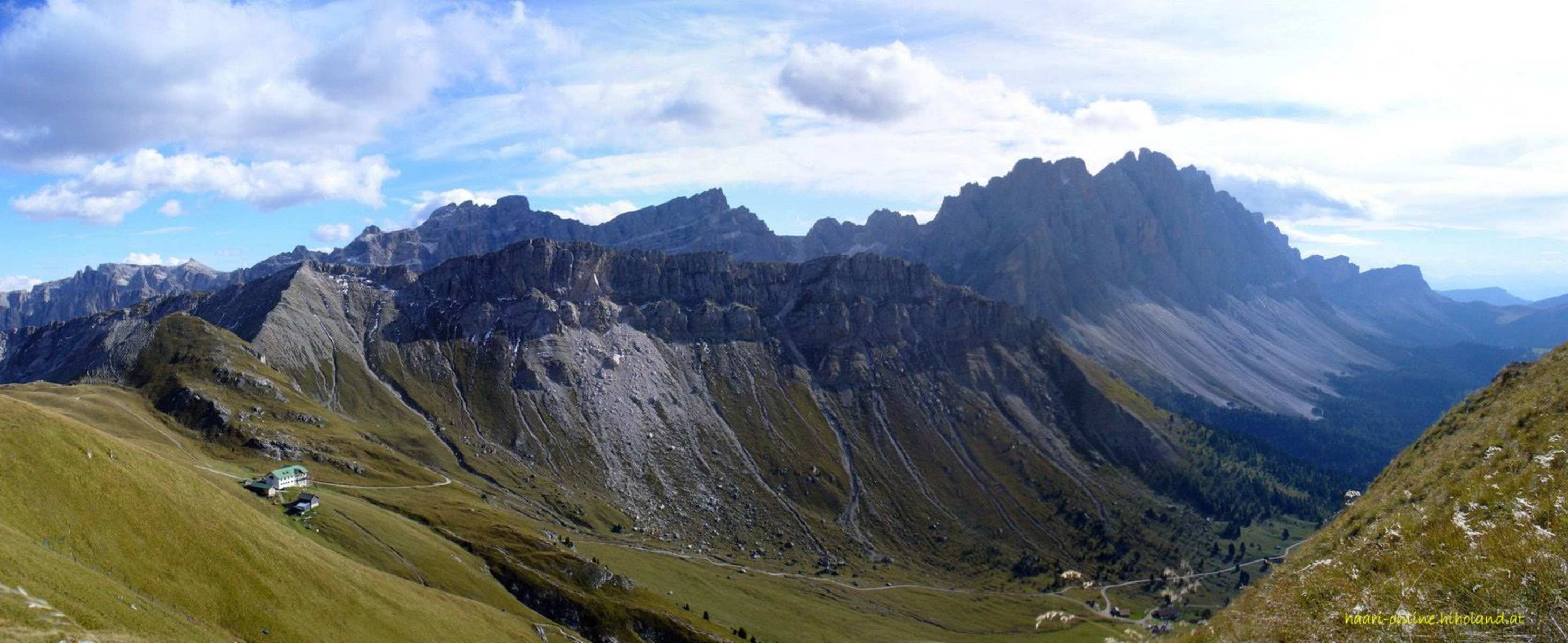 Von der Nives Scharte (2.744 m) geht es abwärts zum aussichtsreichen Plateau, auf der die Puezhütte steht. Von hier geht es noch einmal bergan zum Crespaina Joch und über das Cir Joch steil bergab zum Grödner Joch auf 2.121 m.