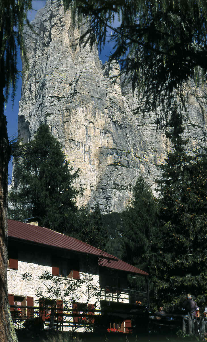 Die Tissi Hütte steht in traumhafter Lage: Einerseits hat man den Tiefblick auf den Alleghesee, andererseits zur Marmolada und in der berühmten Civetta Nordwand kann man die Kletterer von der Terrasse aus beobachten.