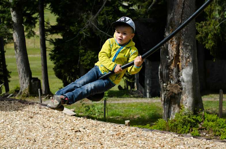 Hier können Alt und Jung ihr Geschick und ihren Mut auf dem Kletternetz, der Tyrolienne, der Tannenzapfenbahn und vielen anderen Attraktionen unter Beweis stellen. Illustrierte Schilder informieren dabei über den einzigartigen Lebensraum und berichten über die Geschichten vom Bruchmandli.