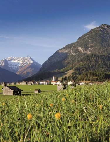 Diese leichte Wanderung im Lechtal startet in Vorderhornbach beim Badeteich Badino.
