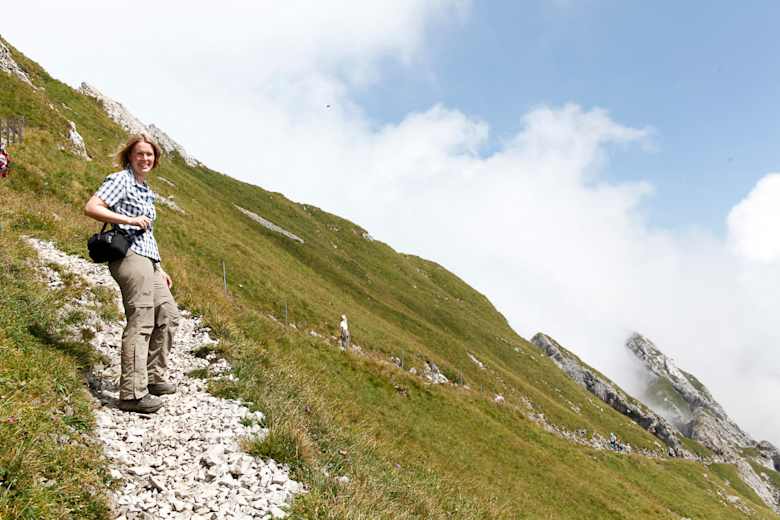 Danach geht es auf dem Blumenpfad und an einigen botanischen Besonderheiten vorbei bis Pilatus-Kulm. Die Busfahrer haben dort ihr Ziel erreicht und kehren gemütlich mit der Bahn zurück ins Tal. Wer nahe der Alpwirtschaft Unterlauelen gestartet ist, nimmt die Treppen hoch zum Oberhaupt (2.106 m). Ab dort erfolgt der Abstieg zunächst Richtung Klimsenhorn.