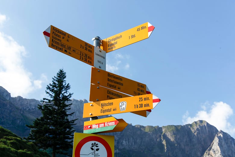 Diese Tour will gut geplant sein. Wer mit dem Bus anreist, startet entweder beim Eigenthaler Hof oder fährt noch weiter bis zur Wendeplatte bei Eigenthal Talboden. Die Wanderung endet dann bei der Gipfelstation der Pilatus-Bahnen.
