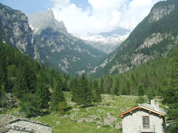 In San Martino (923 m) beginnt der Zustieg zur Luna-Nascente-Hütte in der Berninagruppe. Das familäre Schutzhaus liegt im Herzen des Naturschutzgebietes der Val di Mello, umrahmt von phantastischen Kletterfelsen. Hier fühlen sich Kletterer und Hochtouristen wie in ein Paradies versetzt.