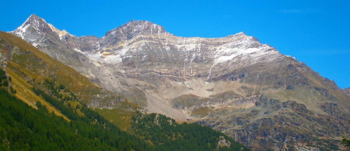 Von der Hütte hat man einen beeindruckenden Ausblick auf den Gebirgsstock des Monte Disgrazia.