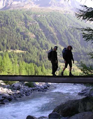 Man durchquert das Dorf und wandert durch einen schönen Fichtenhain bis zum Pian del Lupo, ein flacher Talboden, in dem sich drei Täler treffen (Val Ventina, Val Muretto und Val Sissone).