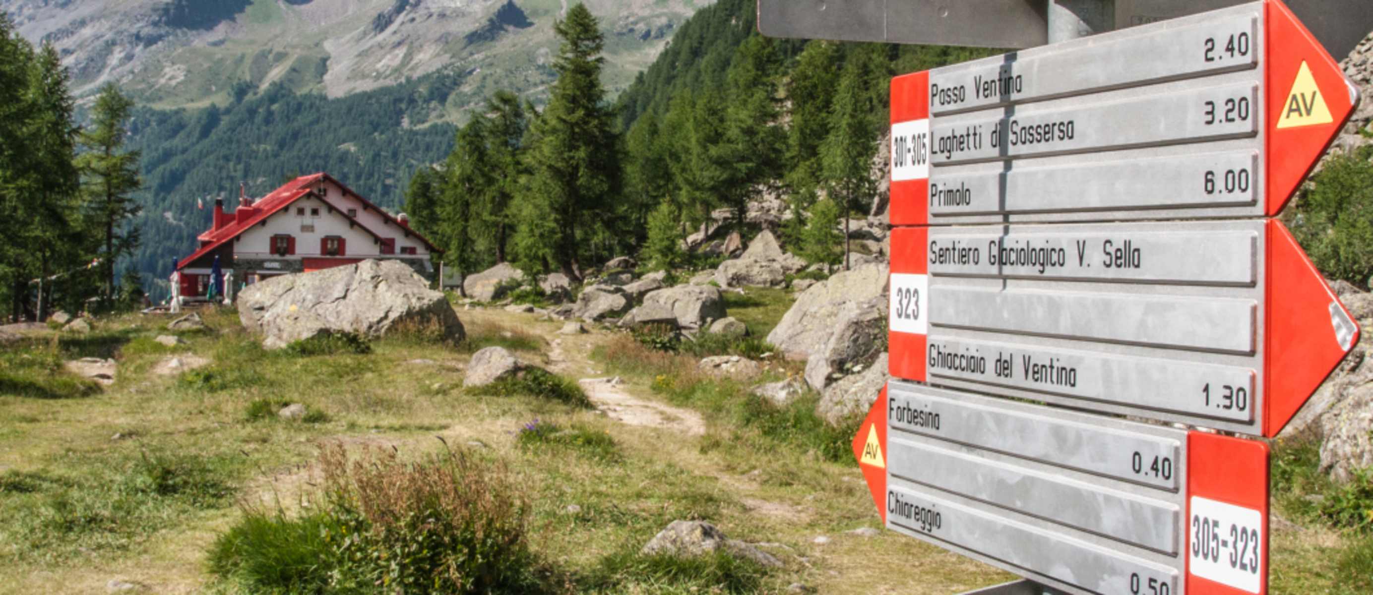 Der Weg führt in einen dichten Wald und bergwärts. Nachdem man diesen bewaldeten Gürtel durchwandert hat, öffnet sich die Sicht zum Passo del Muretto und in die Valmalenco. Man erreicht die Alpe Ventina (1.960 m), an deren nördlichen Ende die Gerli-Porro-Hütte mit ihrem roten Dach leuchtet.