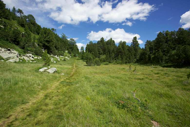 Nach kurzem Anstieg gelangt man in das Forstreservat Selvasecca. Es ist das grösste Zirbelkiefer-Wald im Süden der Alpen beheimatet viele historische Steinhäuser und Käsereien, die ihre Waren zum Kauf anbieten. In Acquacalda (1.750 m) endet dieser erholsame Ausflug, hier wartet eine Erfrischung auf alle Wanderer.