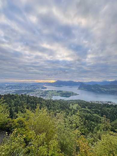 Von der Mittelstation Krienseregg der Panoramagondelbahn Kriens führt der leicht ansteigende Bergweg zur Roteflue mit herrlichem Ausblick in die Voralpen (Stanserhorn und Titlis) und zum Schönenboden und die Emmentaler Alpen. Auf der Trümmelegg geht es entlang der Kantonsgrenze Luzern/Nidwalden bergauf zur Station Fräkmüntegg. Recht gemütliche Bergwanderung durch ein schönes Waldgebiet, die sich ideal für einen heißen Sommertag eignet.