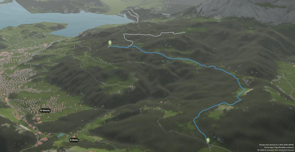 Man gelangt in den Stösswald zur höchsten Stelle der Wanderung (1.040 m). Auf der Straße entlang des Waldrandes wandert man weiter an der Alp Schilt und Neualp vorbei zur Posthaltestelle Holderchäppeli auf 935 m.