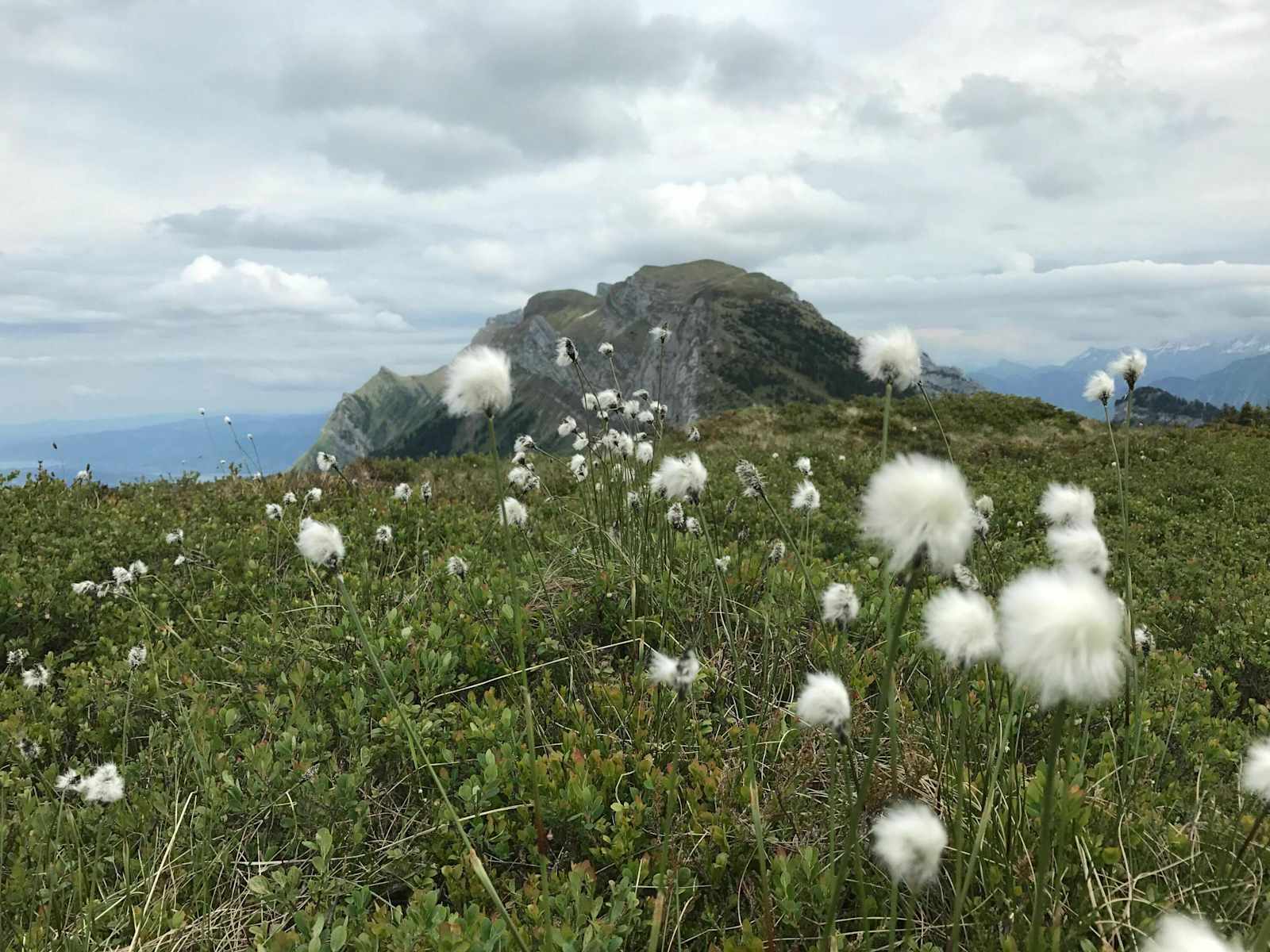 Für den Wiederanstieg auf die Grathöhe haben die guten Geister der Pro Pilatus an exponierten Stellen fixe Handläufe angebracht. Vom grasbewachsenen Rücken des Widderfeldes lässt es sich leicht zum Felli (1.701 m) absteigen, einem moorigen, breiten Bergrücken indessen Südseite sich die Alphütte Feld duckt.