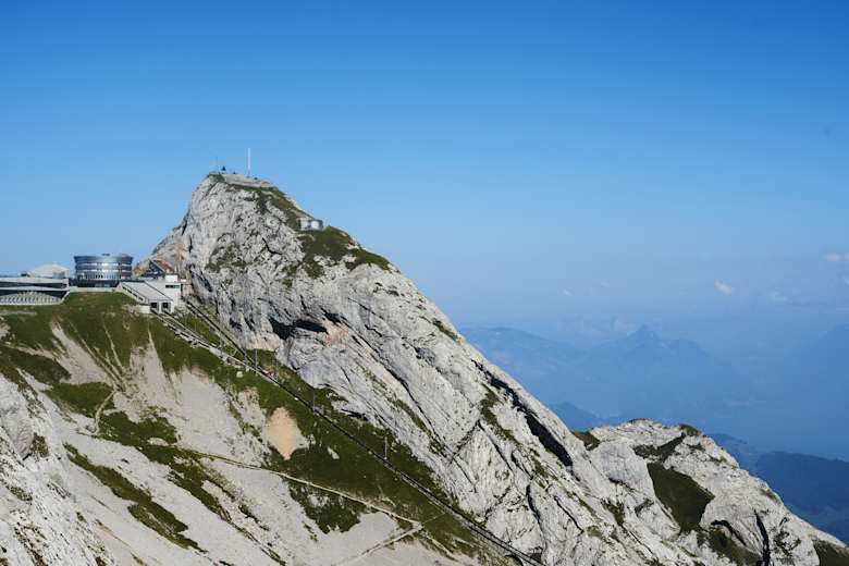 Schließlich steigt man in 45 Min. durch die Westflanke und das Chriesiloch auf den Pilatus Kulm (2.119 m).