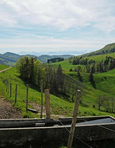Kurz darauf folgt auch schon der nächste Aussichtspunkt: die Schauenburgflue. Von hier schweift der Blick in die andere Richtung - ins obere Baselbiet. Weiter geht es auf Asphalt zur Ruine Neu Schauenburg und zum Bienenberg. Von hier sieht man ganz wunderbar ins Röserental.