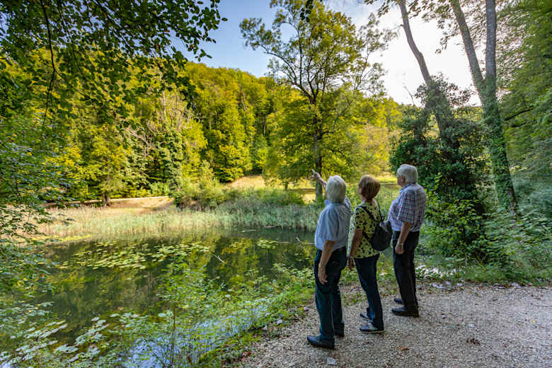 Vom Arlesheimer Dorfzentrum wandert man gemütlich entlang des Weihers hinauf zur Schartenflue auf 759 m. Hier befindet sich der Gempenturm, von dem aus man einen wirklich tollen Blick hinunter in die Oberrheinische Tiefebene, die zwischen Vogesen und dem Schwarzwald eingebettet ist.