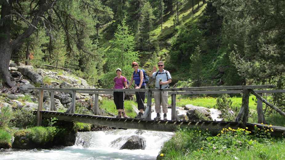 Auf der Senda da Mulin, Brücke über die Clemgia Foto: Tourismus Engadin Scuol Samnaun Val Müstair AG