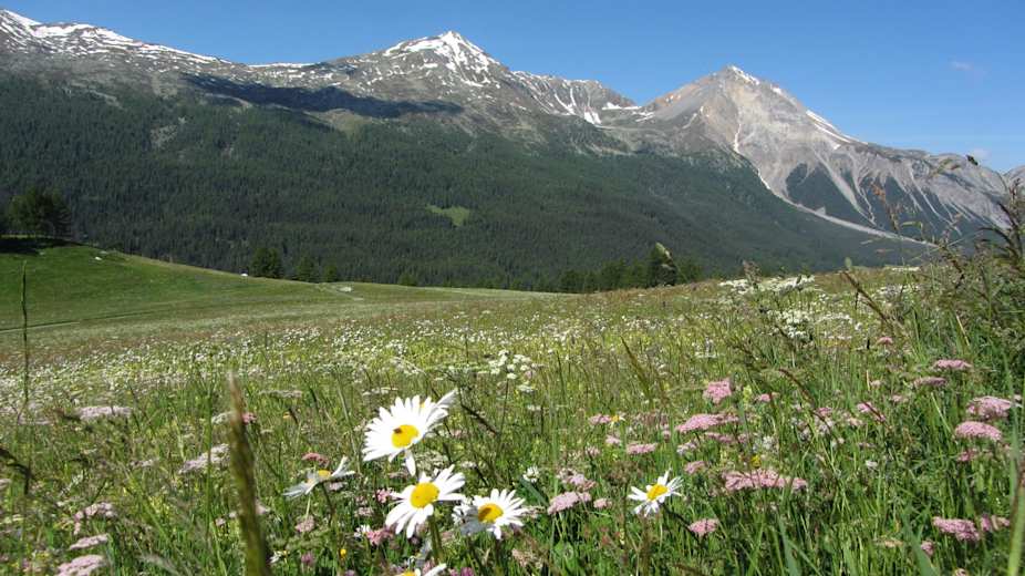 Blumenwiese bei Lü Foto: Tourismus Engadin Scuol Samnaun Val Müstair AG