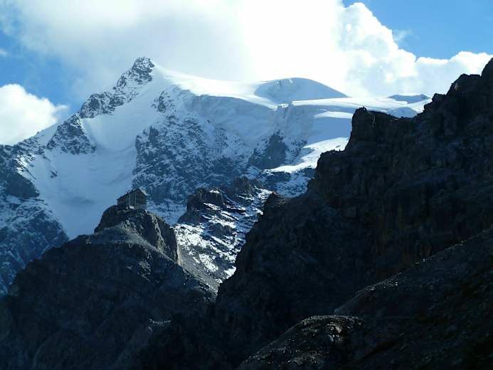 Die Julius Payer Hütte steht spektakulär auf 3.029 m am Fuße des Ortlers, dem höchsten Berg der Ortlergruppe und ganz Südtirols, auf dem Tabarettagrat, der das Suldental vom Trafoital trennt. Der Zustieg von Sulden aus ist relativ leicht, nur im oberen Abschnitt am Grat ist der Weg ein wenig ausgesetzt und mit Drahtseilen gesichert.