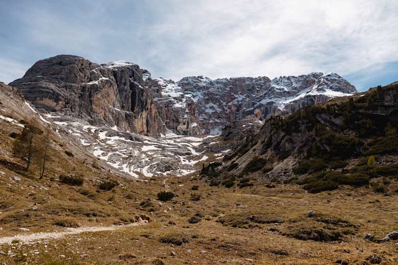 Vom Parkplatz aus führt eine gemütliche Schotterstraße in Richtung Südosten am Berggasthof Plätzwiese und am Hotel Hohe Gaisl vorbei. Der fast ebene Weg steigt nur kurz vor dem Ziel noch einmal leicht an und 300 m weiter erreicht man - an der Festungsruine vorbei - die Dürrensteinhütte.
