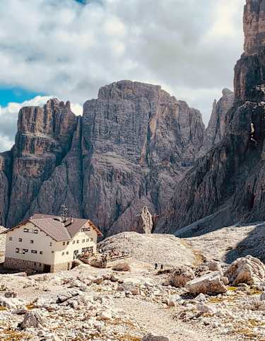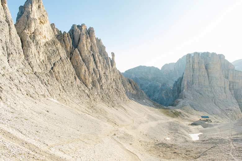 Schließlich erreicht man die Gartlhütte auf 2.621 m, die wunderschön am Fuße der Vajolettürme steht, der perfekt Ausgangspunkt für diverse Kletterunternehmungen.