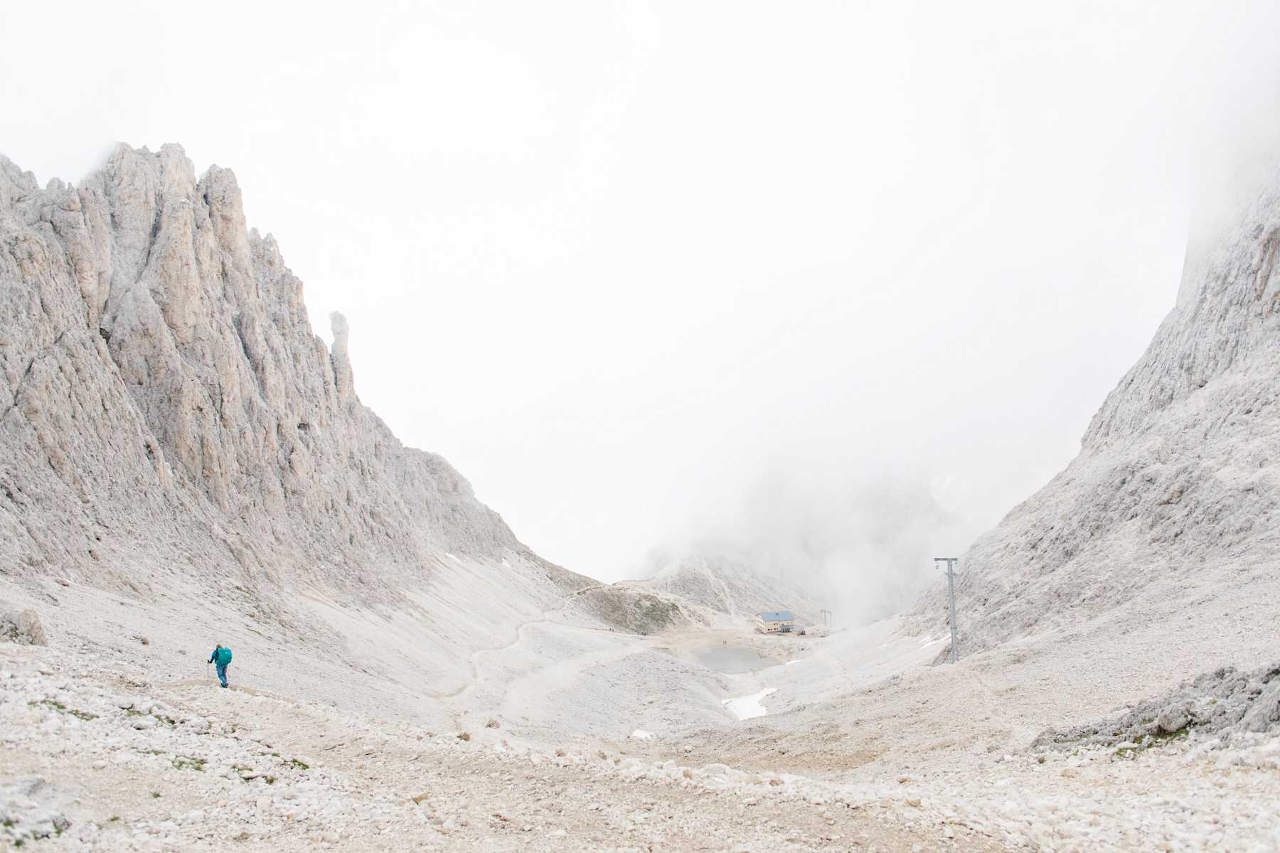 Ab der Hütte muss man sich entscheiden, wie man weiter gehen möchte. Der Dolomitenweg Nr. 8 führt direkt über einen Klettersteig - den Santnerpass Klettersteig - zuerst hinauf zur Santnerpass Hütte und danach abwärts zur Gartlhütte. Weniger geübte und nicht ganz schwindelfreie Wanderer werden aber sicherlich den Weg Nr. 550 über das Tschagger Joch wählen. Der Anstieg ist steil und geröllig, die Aussicht vom Joch auf 2.630 m aber grandios. Auch beim Abstieg ist aufgrund des vielen losen Schotters Vorsicht geboten. An der Weggabelung angekommen, hält mach sich links auf dem Weg Nr. 541 zum Rif. Vajolet. Unterhalb des Baumannkamms und der Rosengartenspitze geht es höchst aussichtsreich leicht abwärts zur Vajolethütte auf 2.243 m.