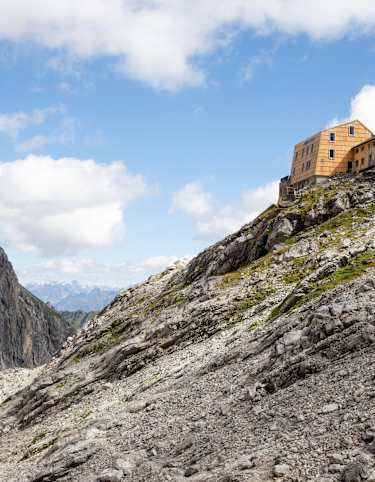 Über das Dürrschartl, immer dem Weg 513 folgend, erreicht man schließlich die Friedrichshafener Hütte auf 2.138 m.