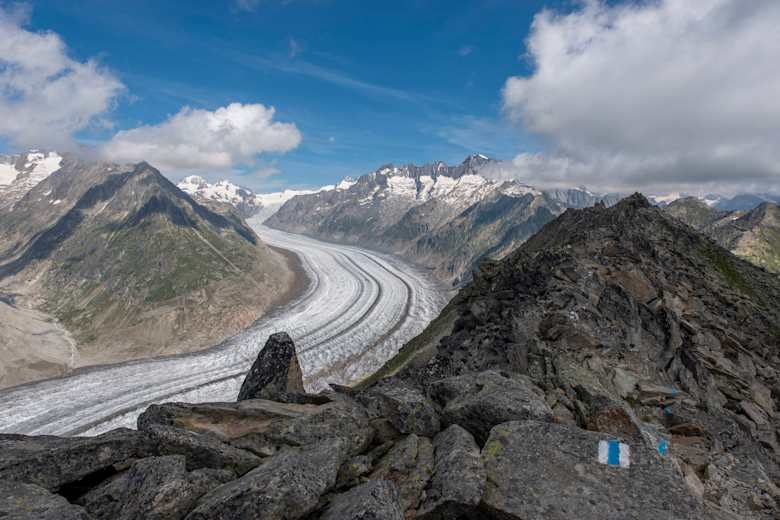 Eine großartige Tour für trittsichere und schwindelfreie Wanderer ist der UNESCO-Höhenweg. Er führt vom Bettmerhorn entlang des Gratweges bis zum Eggishorn. Dabei genießt man grandiose Ausblicke auf die beeindruckende Walliser Bergwelt.