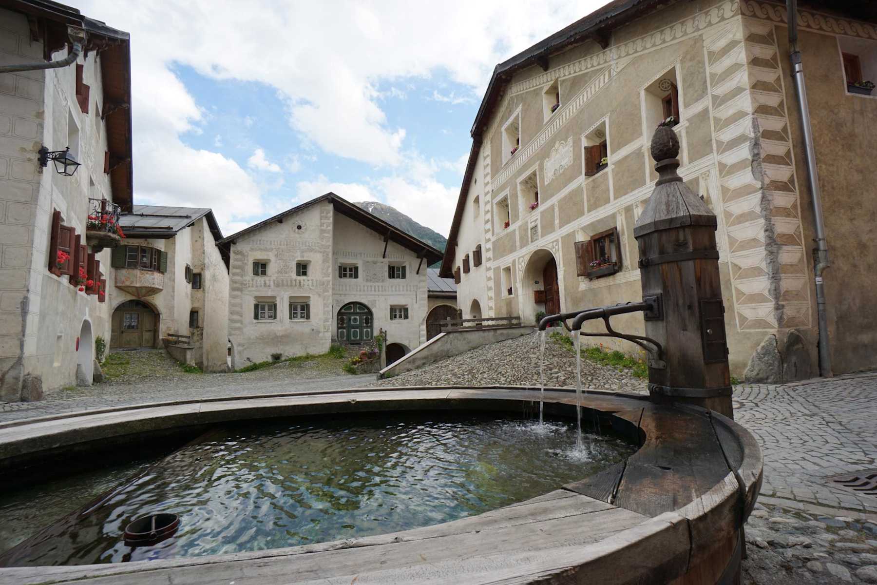 Guarda mit dem Schellen-Ursli-Haus Foto: Niculin Meyer, Tourismus Engadin Scuol Samnaun Val Müstair AG