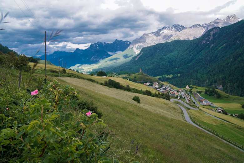 Via Reschenpass (Nauders - Martina) oder Ofenpass (Val Müstair - Zernez) auf der H27 bis Guarda.