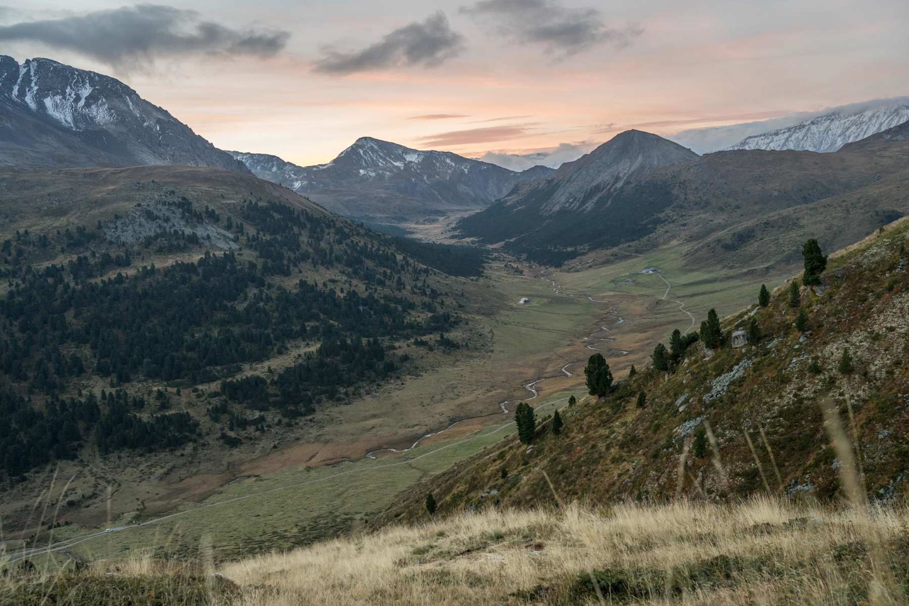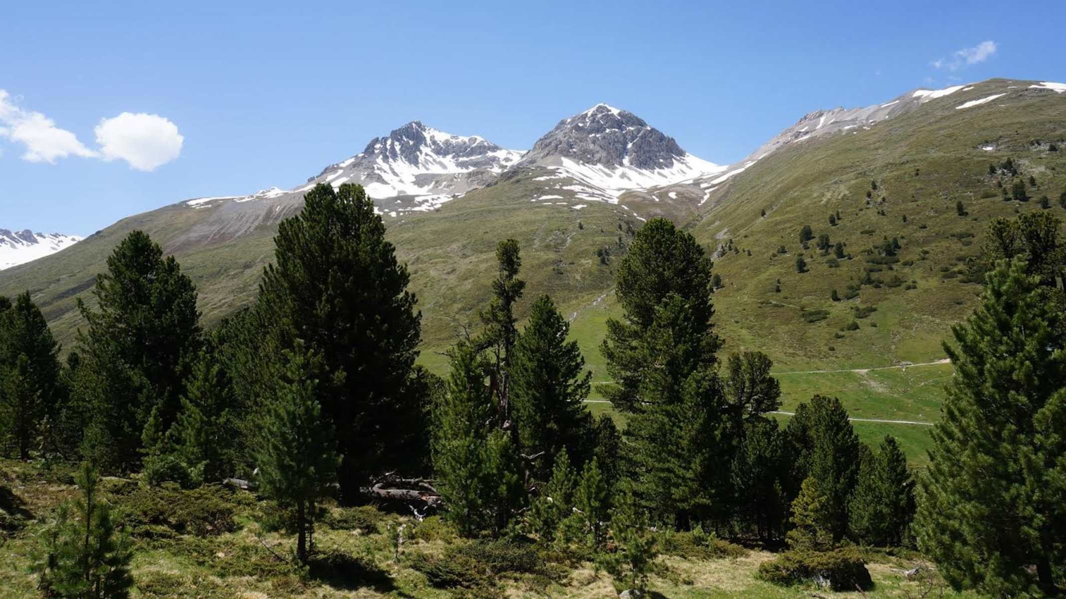 Umweg via Alp Astras wählen (Bergwirtschaft) und zurück durch den God da Tamangur, höchster Arvenwald Europas bis Plan d’Immez. Bei Punkt 1.994 auf die linke Flussseite wechseln und dem Pfad entlang bis S-charl.